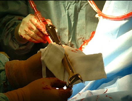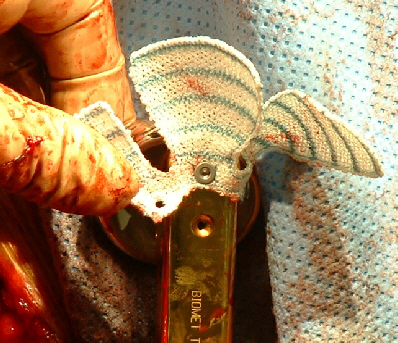 Above: Nottingham Hood partly attached to metal prosthesis.